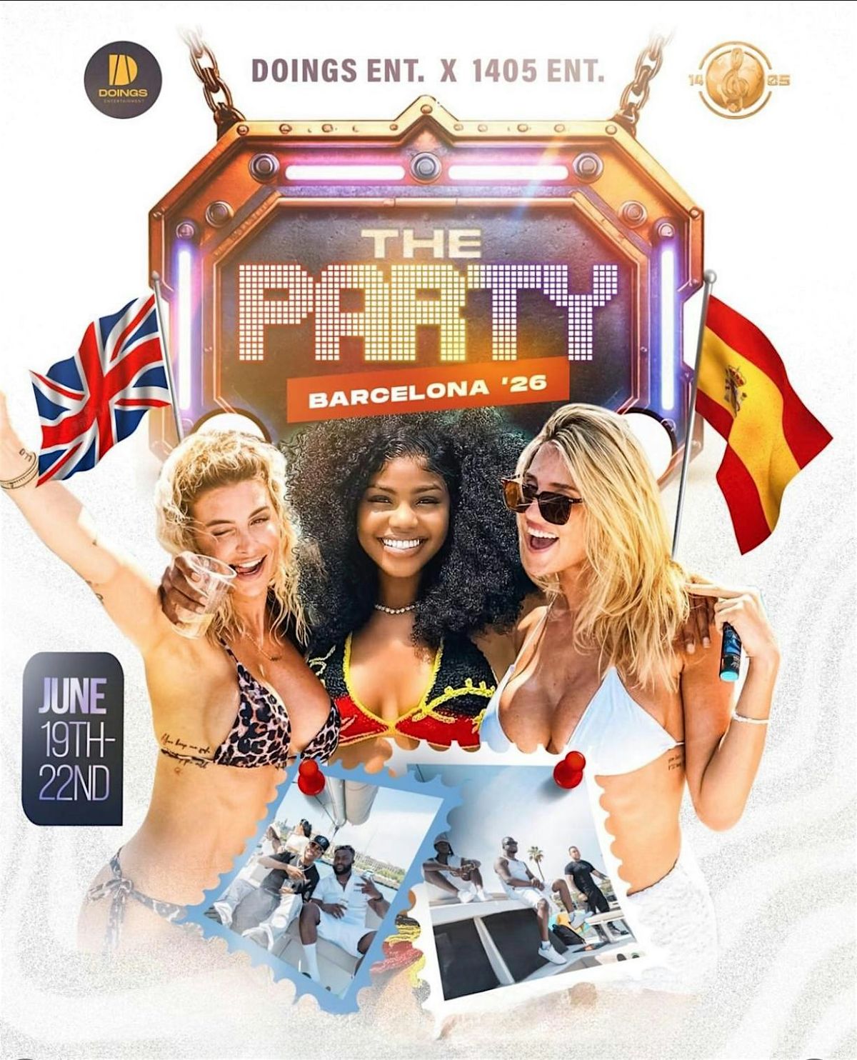 3 days, Non-stop fun! Doings Entertainment in Collaboration with 1405 ent presents a weekend like no other.. The Party x Barcelona 26’—About this Event