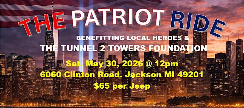 Make sure to get your card stamped all along the route to be entered into the raffles for great prizes from all of our sponsors. The Patriot Ride will see Jeepers travel 5 stops through Northwest Jackson County, into the beautiful town of Leslie before taking a scenic drive through the Waterloo area enroute to the wondeful downtown of Chelsea, followed by another beautiful drive to the quint village of Manchester before arriving at Keeley Park in Jackson to enjoy The Never Forget Concert featuring Sadie Bass, Jason Cross, & Kevin Wolff.