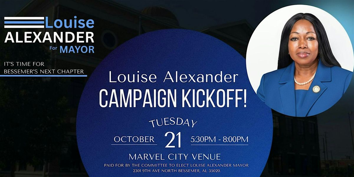 Grab your friends, neighbors, and fellow Bessemer supporters for a night full of energy, music, and connection! Celebrate progress, community, and leadership as we rally together behind Louise Alexander’s vision for a stronger, united Marvel City. This isn’t just a campaign — it’s a movement, and you’re part of it!