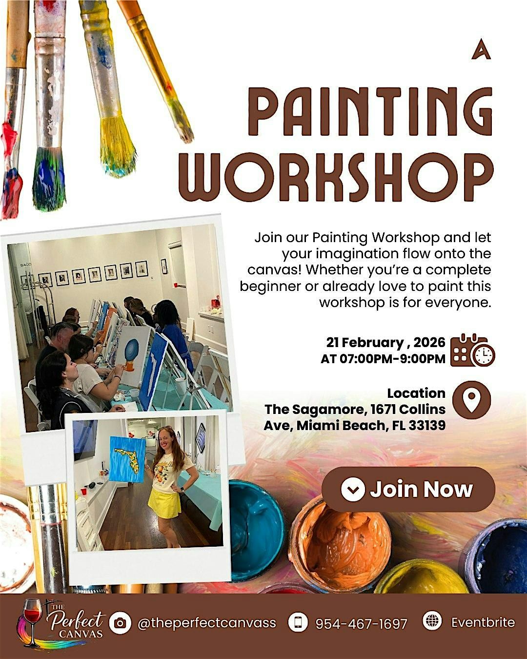 Join us for an unforgettable evening of creativity, wine, and music at the iconic Sagamore Hotel in Miami Beach on February 21, 2026. This guided paint-and-sip experience is perfect for a night out with friends, a date night, or anyone looking to unwind and have fun.