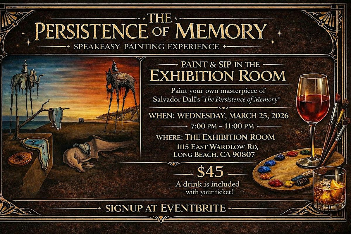 The Exhibition Room invites you to “The Persistence of Memory — A Speakeasy Painting Experience,” an intimate, immersive paint-and-sip inspired by Salvador Dalí’s iconic masterpiece, The Persistence of Memory.