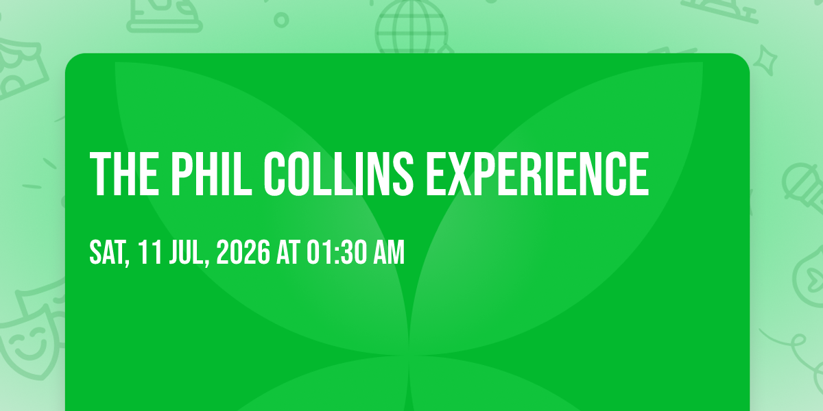 📍 Location: 39.1505, -94.4848🎉 Welcome to The Phil Collins Experience, where the impossible becomes possible and dreams take flight! 🏛️ Join us at Ameristar Casino & Hotel - Kansas City in the heart of Kansas City, MO for an event that will redefine your expectations. 📅 On July 11th, 2026 at 01:30 AM, witness the transformation of space and time into something truly magical. ✨ It's a curated experience combining the best of innovation, entertainment, and community spirit, creating moments that will be remembered for years to come. Whether you're a first-time visitor or a seasoned enthusiast, prepare to be amazed. 🎊 Book now to ensure your place in this unforgettable experience!