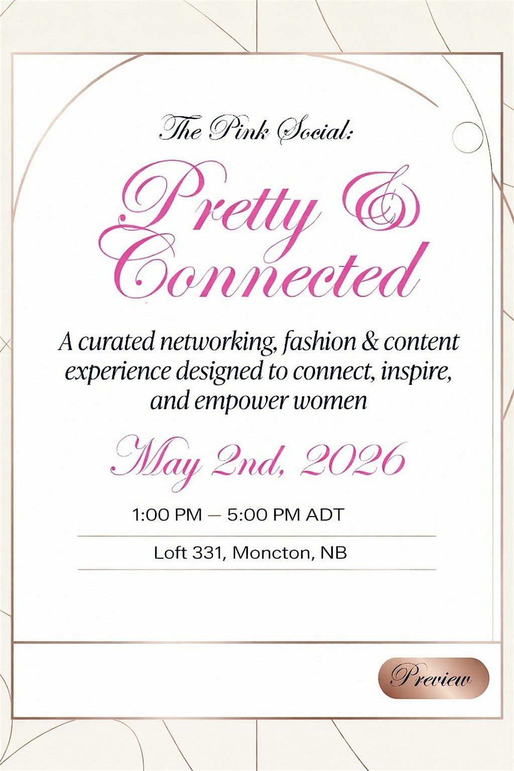The Pink Social: Pretty & Connected is a feminine, elevated networking + fashion experience designed to bring together creators, models, friends and women in business.