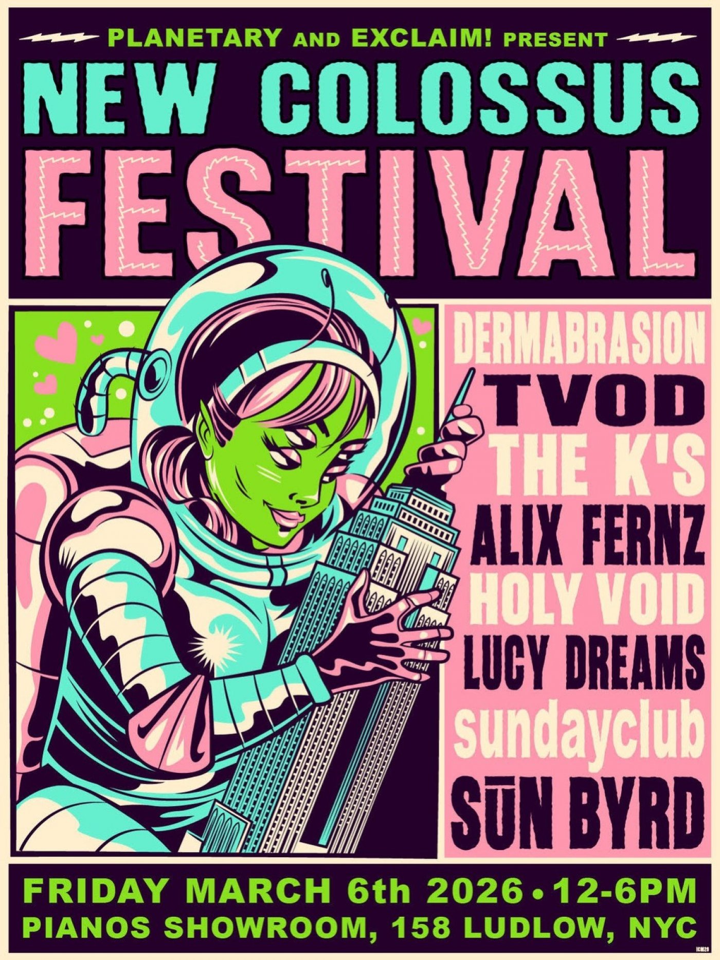 Our daytime showcase at The New Colossus Festival will be at Pianos Showroom on March 6th in New York City from 12pm-6pm. Featuring a highly curated roster of indie music's freshest talents including Holy Void, Dermabrasion, Alix Fernz, Lucy Dreams, SundayClub, The K's, TVOD and Sun Bryd.