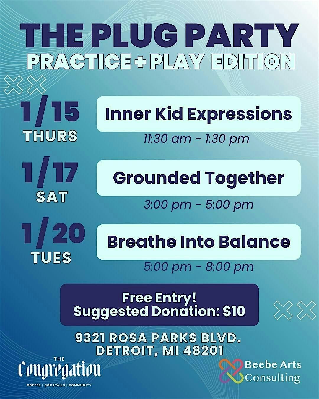 The Plug Party: Practice + Play Edition is a set of drop-in style sessions hosted at The Congregation, featuring short, guided activities you can complete at your own pace.