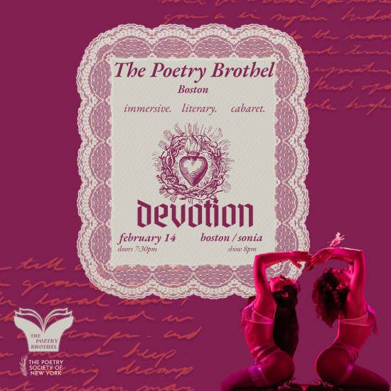 🎁 Gift this experience to your loved ones! Click here to check out our gift card. ⭐ The Poetry Brothel Boston: Devotion is an immersive literary cabaret that ignites your passions! Get your tickets now for The Poetry Brothel Boston: Devotion in Boston, MA! Highlights 🎭 Experience a unique blend of poetry, burlesque, and mysticism. 💖 Enjoy intimate one-on-one readings with our talented poets. 🌌 Immerse yourself in a night filled with artistic magic and connection. 🔮 Explore your future with our elite professional fortune-tellers. 🎤 Witness captivating performances that will leave you breathless. General Info 👤 Age requirement: 21+ with valid ID ♿ Accessibility: Yes 📍 Location / Venue: Sonia Live Music Venue 👗 Dress code: Come in costume or character to enhance your experience. 🎵 Genre: Literary Cabaret Description Join us for The Poetry Brothel Boston: Devotion, an enchanting night where your deepest desires come to life! Experience the thrill of live poetry, burlesque, and mysticism as you engage with our talented artists. Choose a poet to invite into the boudoir for an intimate reading, or lose yourself in the mesmerizing performances on stage. With fortune-tellers offering glimpses into your future, this is a night to explore love, passion, and creativity. Don't miss this mid-winter aphrodisiac-get your tickets now for The Poetry Brothel Boston: Devotion in Boston, MA!