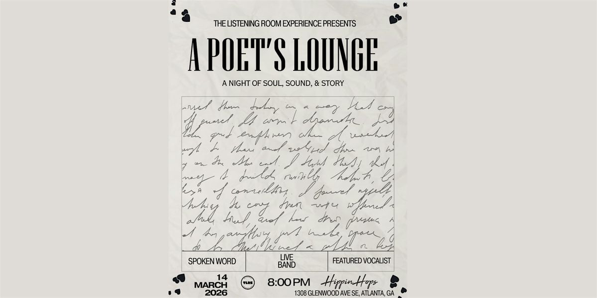 The Poet’s Lounge is an intentional night of live music, spoken word, and shared energy. This is a space where artists and community come together to be seen, heard, and felt.