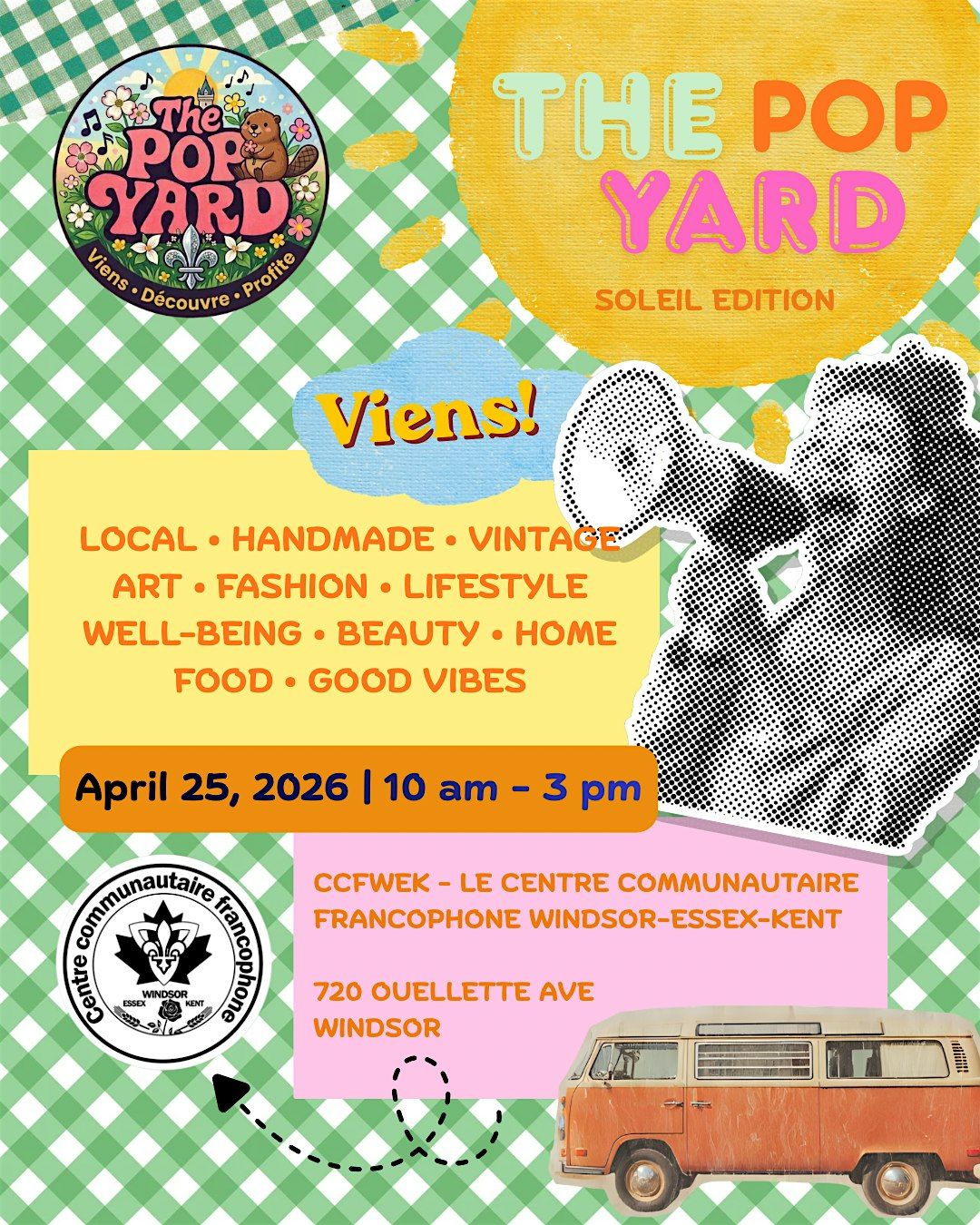 We’re so excited to be bringing The Pop Yard to a new space in downtown Windsor: the CCFWEK (Centre Communautaire Francophone Windsor–Essex–Kent), a beautiful community hub that celebrates culture and connection.