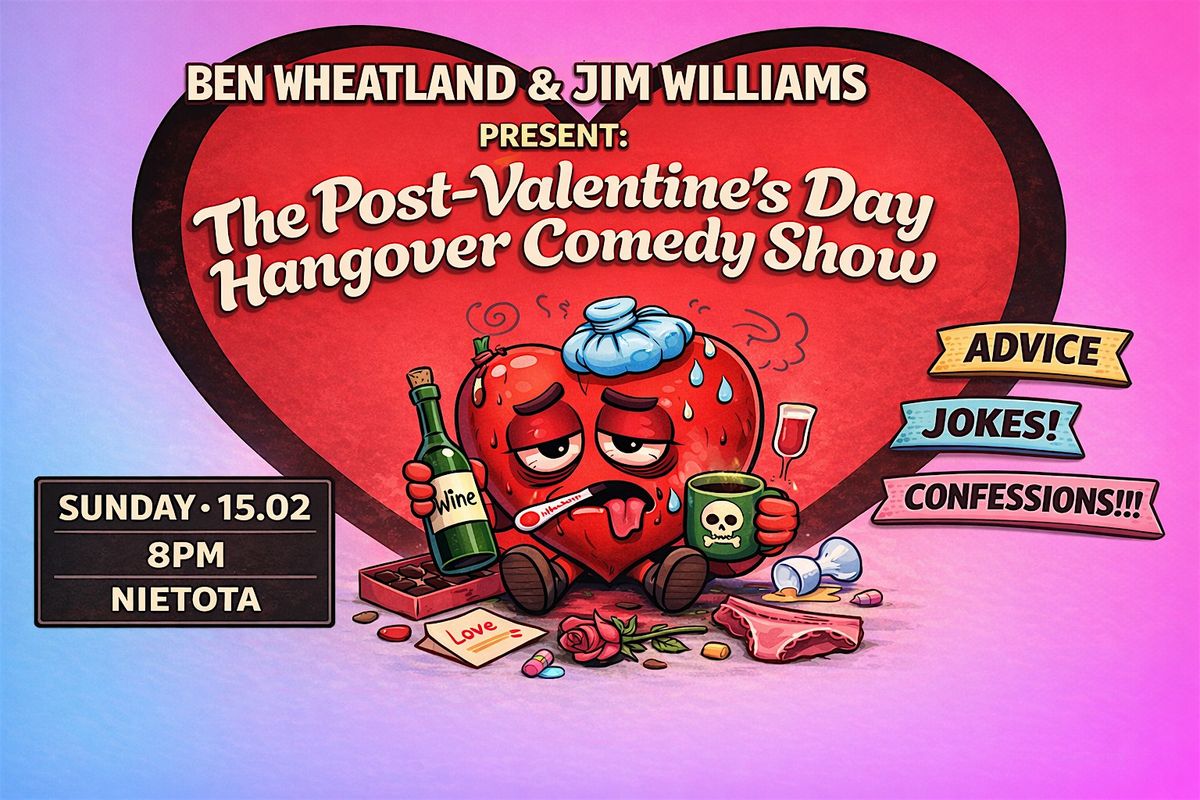 Ben Wheatland and Jim Williams Present The Post-Valentine’s Day Hangover Comedy Show! Half stand-up comedy, half audience interaction, half discount therapy, ALL an opportunity for everyone to collectively point and laugh at love right in its stupid love face.