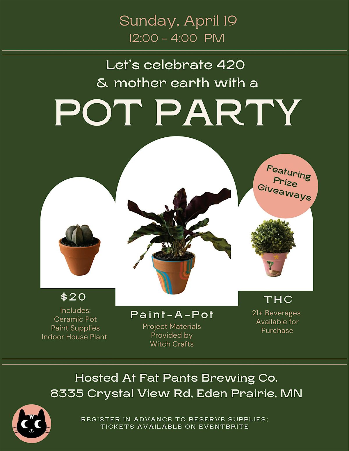 Join us in kicking off earth week and 420 with a pot party! Design and paint a terra cotta pot to take home an indoor house plant in. Flying Cloud thc beverages will be available for purchase. Plus drawings for prizes will be held throughout the afternoon. Reserve tickets now to claim your spot!