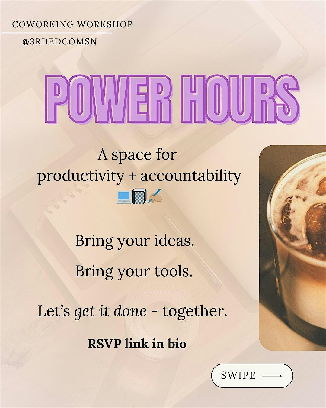 Power Hours is a faith-based coworking session dedicated to pursuing purpose through accountability and productivity. Our time together will be a focused space designed to help you actually get things done! 💪🏾