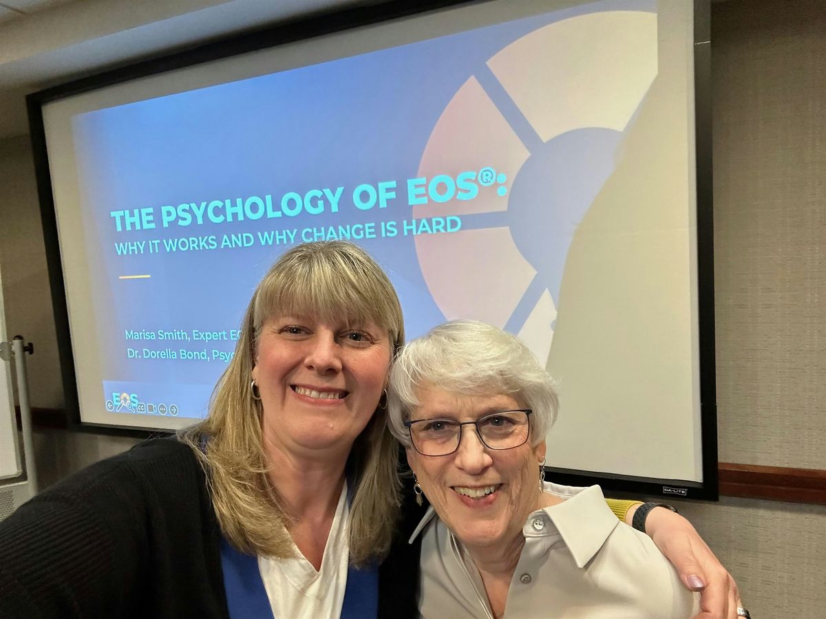 In this full-day workshop with Expert EOS Implementer Marisa Smith and Psychologist Dr. Dorella Bond, Ph.D. (Marisa’s mom!), you’ll elevate your EQ while learning the practical and scientific reasons behind EOS. You’ll also discover how people and organizations navigate change — and walk away with actionable tools to help your clients (and yourself) move through resistance and achieve Vision, Traction, and Healthy.