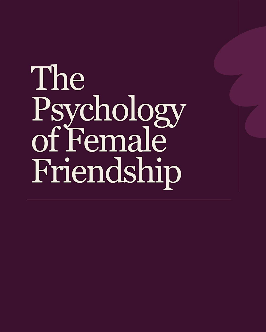 This 90-minute expert lecture explores what psychology, neuroscience and sociology reveal about female friendship - the relationships that shape our wellbeing, our sense of self, our resilience.