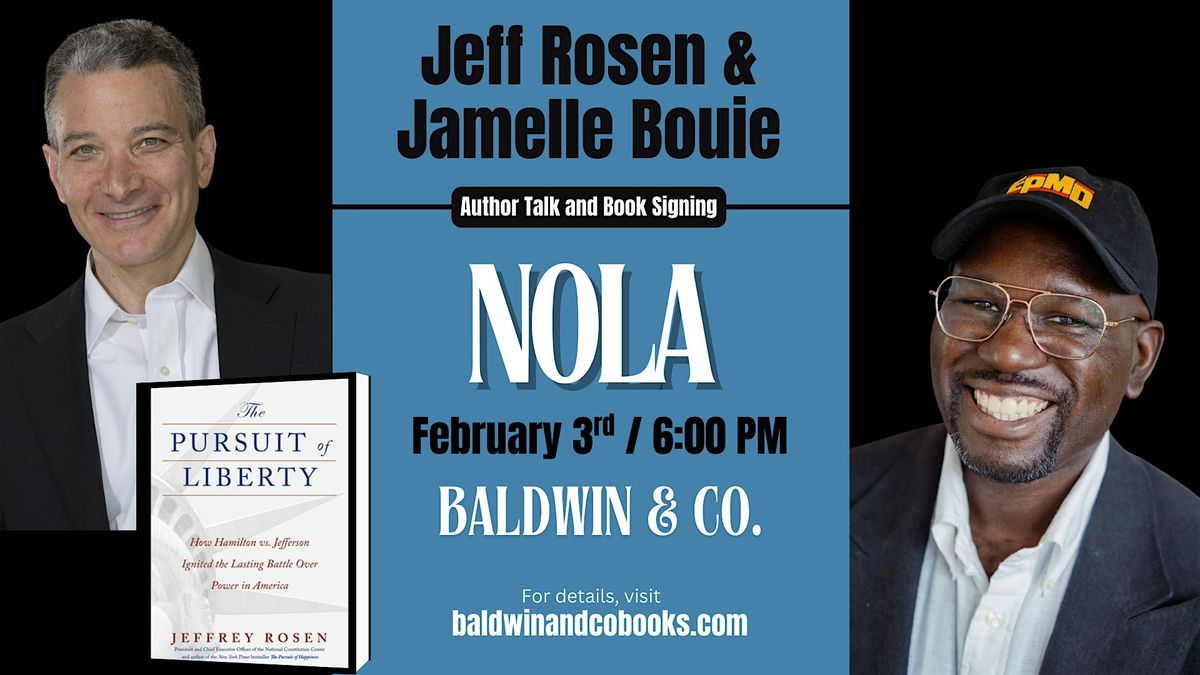 Bestselling author and president of the National Constitution Center Jeffrey Rosen, in conversation with the New York Times' Jamelle Bouie, will explore the clashing visions of Hamilton and Jefferson about how to balance liberty and power in a debate that continues to define—and divide—our country: Jefferson championed states’ rights and individual liberties, while Hamilton pushed for a strong federal government and a powerful executive. This ongoing tug-of-war has shaped all the pivotal moments in American history, including the Reconstruction Era debates about how the federal government should respond to rampant private violence against freedmen in places like New Orleans and throughout Louisiana. Rosen and Bouie will break down the opposing constitutional visions that have shaped our country since the Founding and highlight their relevance to ongoing struggles over the balance between liberty and power.