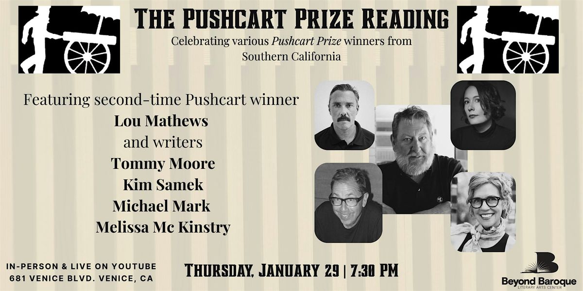 Join us in the Wanda Coleman Theater to celebrate various Pushcart Prize winners from Southern California. The 50th anniversary edition of the Pushcart Prize anthology features new work from second-time winner Lou Mathews. Reading alongside him are fiction writers Tommy Moore and Kim Samek, as well as poets Michael Mark and Melissa Mc Kinstry. Reception and book signings to follow.