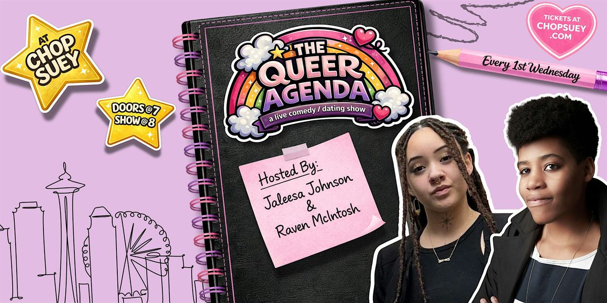 Welcome to The Queer Agenda: a live comedy dating show where flirting becomes a spectator sport.Hosted by Jaleesa Johnson & Raven McIntosh