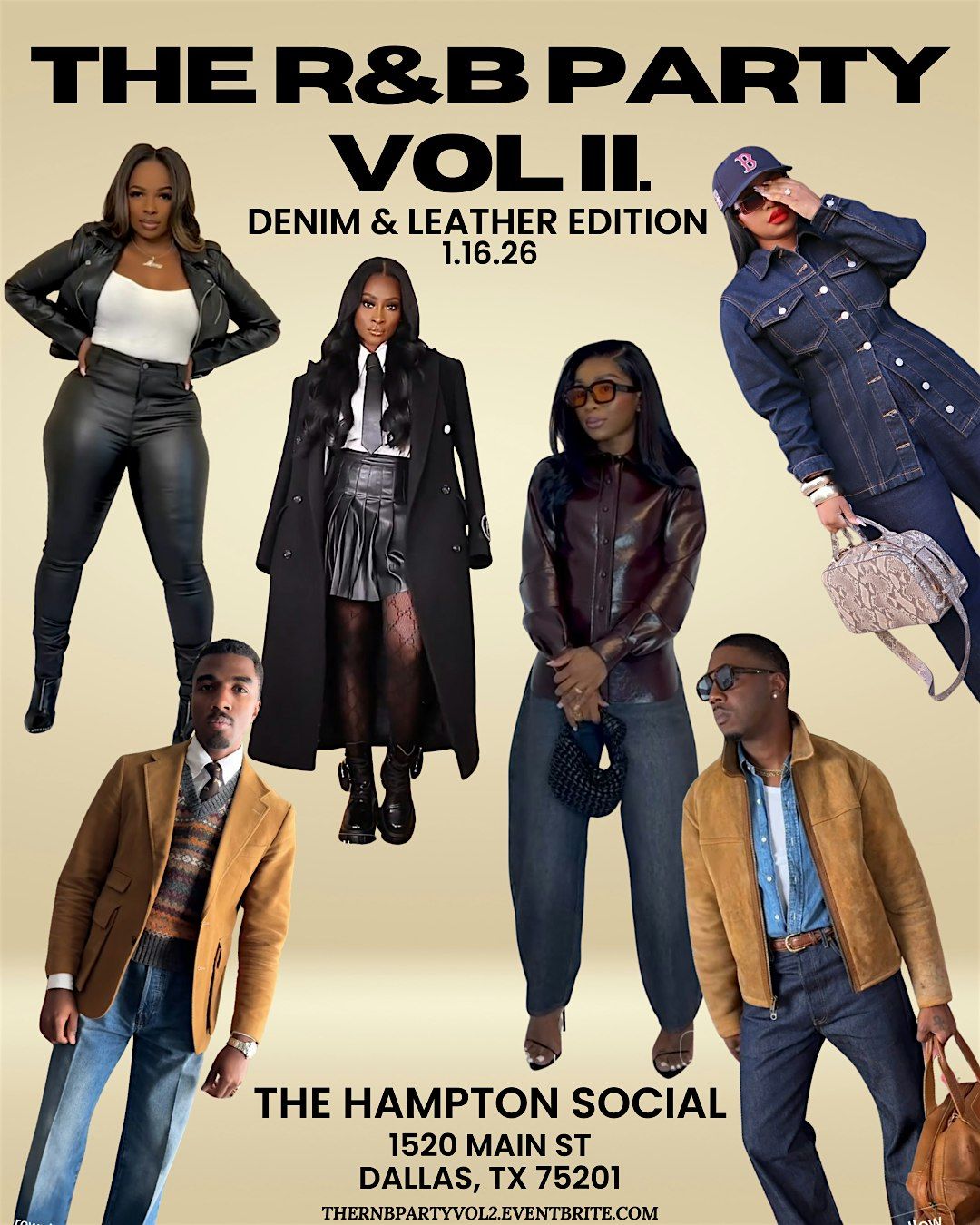 We’re back again. Step into an R&B experience like no other. Our denim and leather attired celebration takes place Friday, January 16th at The Hampton Social Dallas and brings together beautiful energy, unforgettable music, and a curated atmosphere designed for the city’s professionals. Join us from 7:00 PM to 12:00 AM for a night filled with R&B favorites, 90s classics, and moments worth raising a glass to.