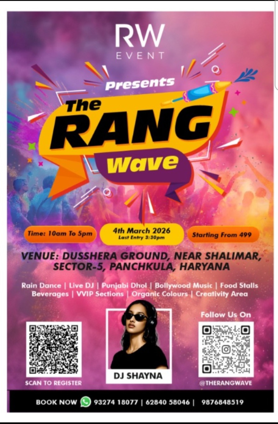 Get ready for a high-energy Holi party with colors, rain dance, and nonstop DJ music! Celebrate with your friends, squad, or partner as Tricity comes alive in color ππΊ