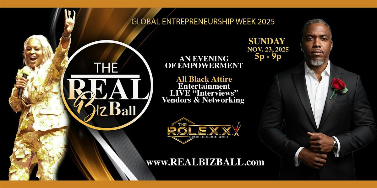 The Real Biz Ball is not your average empowerment event — it’s a bold, elegant evening designed to celebrate entrepreneurship, leadership, and community impact. As the official finale of Global Entrepreneurship Week 2025, this signature experience will bring together business professionals, real estate investors, and visionary leaders for one unforgettable evening of insight, inspiration, and entertainment.