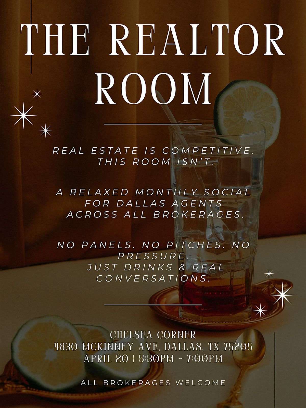 The Realtor Room – Dallas is a relaxed monthly social designed for agents across all brokerages to unwind, connect, and build genuine relationships in a low-pressure setting.