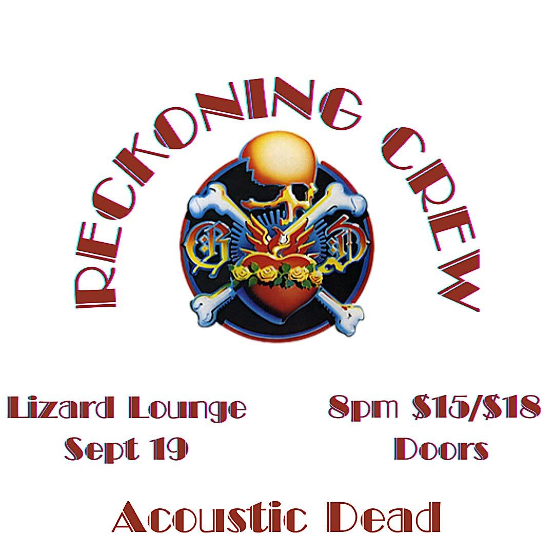 The Reckoning Crew brings together stalwart members of the Boston Grateful Dead scene to present an authentic emulation of the Dead’s iconic acoustic performances captured on the “Reckoning” album. Not limited to just this period of the Dead’s career, The Reckoning Crew, featuring David Rubin & Ian Brenckle from Diamond Blues, Gordon Fromm from Skull and Roses, Mike Verge from Torn and Frayed and Ben DeUrso of Citizens' Dead, has a deep love for all of the material of the storied songbook, and showcases that along with a fierce focus on improvisation & communication for a real good time!