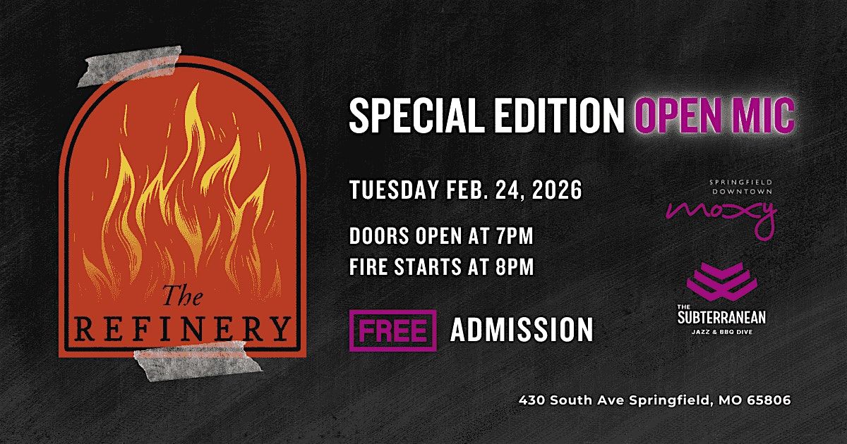 Moxy Springfield is proud to host The Refinery for the very first time — an open mic experience backed by a live band and powered by community. To celebrate a new year of intimate vibes, we’re opening the doors to a night centered on expression, connection, and incredible artistry.