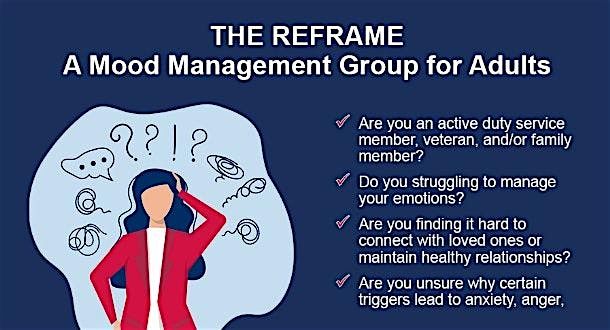 Available in person or virtually - The Reframe is designed to help participants explore emotional challenges, gain insight into the root causes of emotional struggles, and build healthier connections. Through guided discussions and evidence-based strategies, you’ll learn new ways to understand and manage your emotions in a safe, compassionate environment.