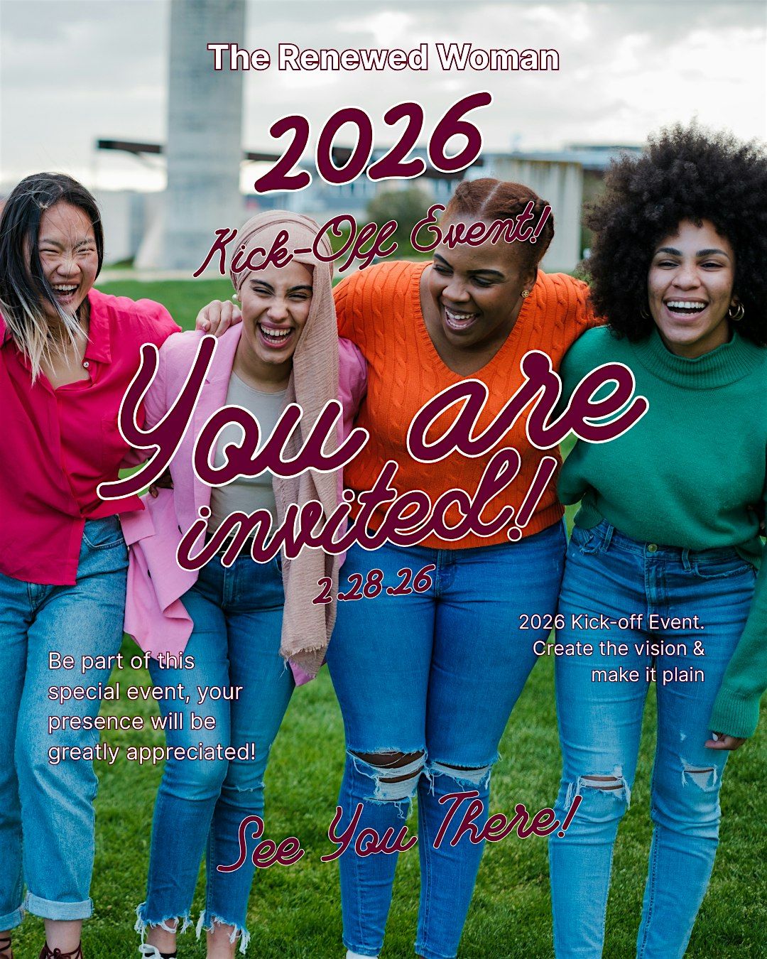 The vibe is chill so come as you are. Come ready to let your guard down and be real. We will discuss our 2026 vision but instead of vision boards we will create custom vision hats. Visit our website at www.renewedwoman.org for details and to RSVP in order for us to have enough materials for each guest.