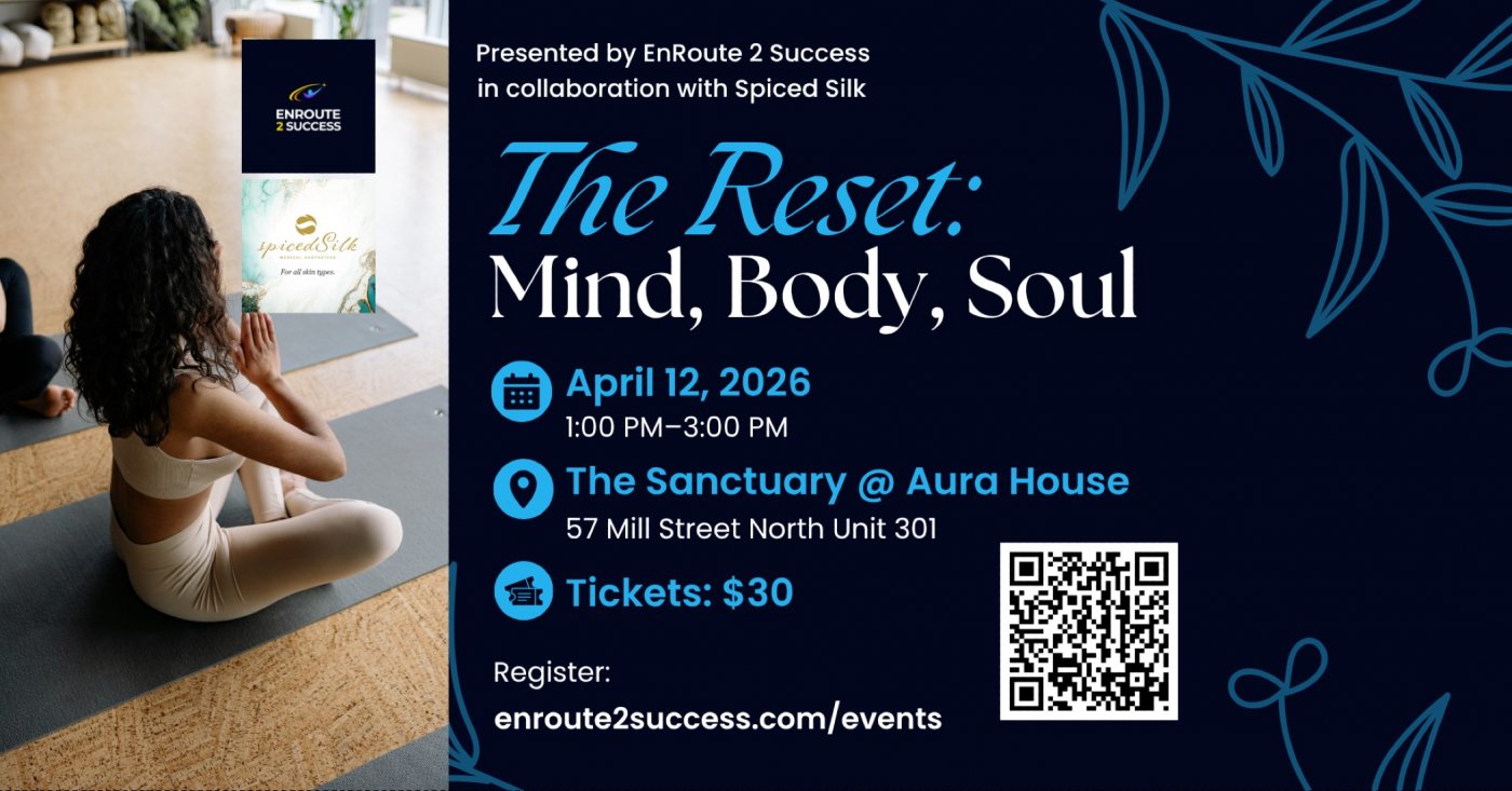 Join EnRoute 2 Success, in collaboration with Spiced Silk, for The Reset: Mind, Body, Soul, a guided yoga experience designed to help you slow down, reset, and reconnect.