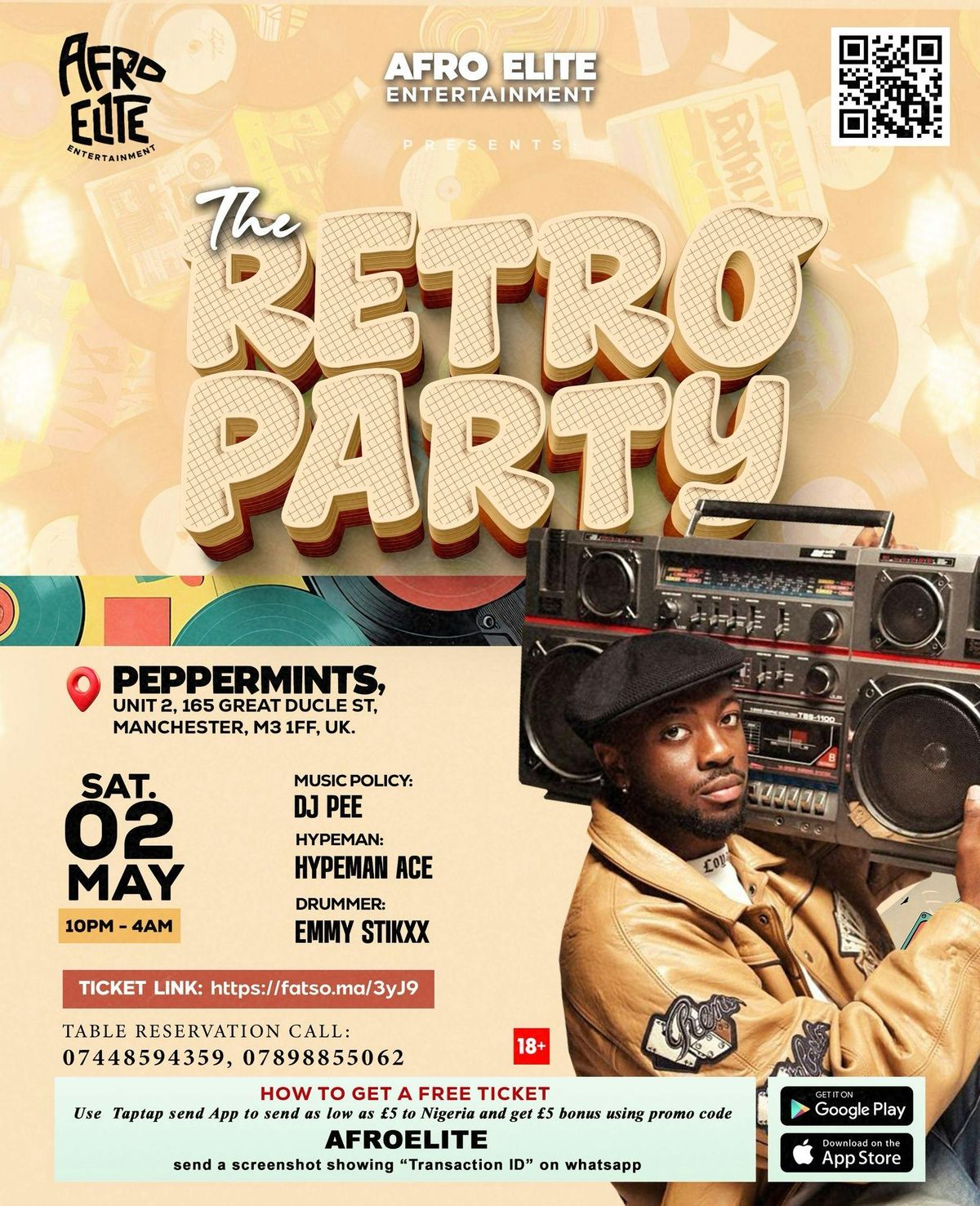 Step into a night where the classics never fade and the vibes never stop 🪩✨ .The Retro Party is bringing back the golden era of music, from old school anthems to timeless Afrobeat hits, all in one unforgettable night. Dress retro, bring the energy, and get ready to dance like it’s the good old days. 🎶🔥Disclaimer: