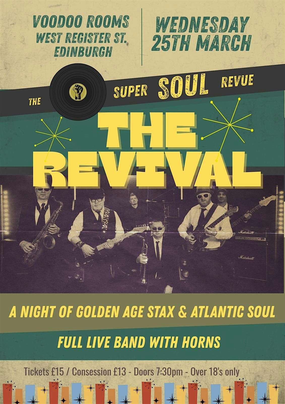 Revival Soul Revue is an Edinburgh-based band celebrating the golden era of soul. Bringing the timeless sounds of Stax and Motown to life, we perform the greatest hits of the ‘60s and ‘70s with authenticity, groove and heart. From deep Southern soul to Detroit dancefloor classics, we keep the spirit alive — the way it was meant to be heard.