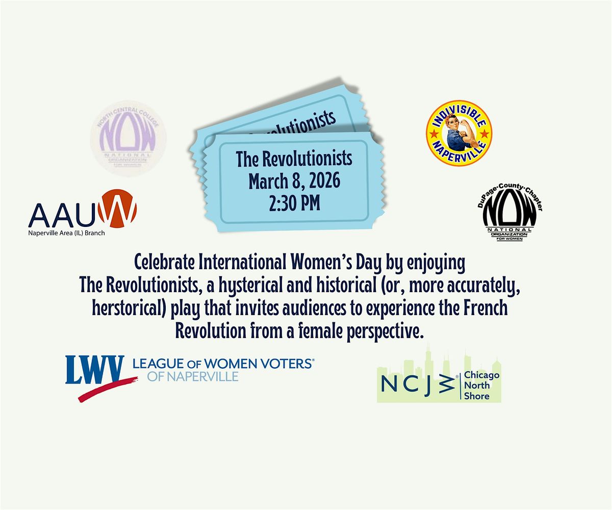 In celebration of International Women’s Day, AAUW Naperville Area, League of Women Voters of Naperville, National Council of Jewish Women Chicago North Shore, Indivisible Naperville, DuPage NOW, and NCC NOW are excited to present a production of on Sunday, March 8, 2026, at 2:30 PM.