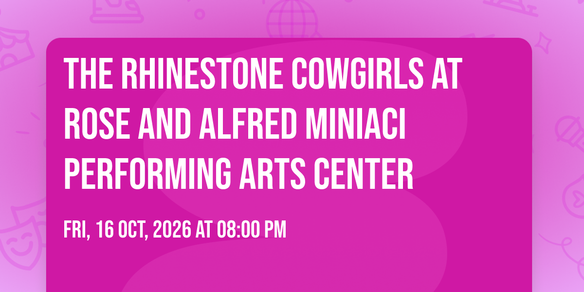 ✨ Embark on an extraordinary journey at The Rhinestone Cowgirls at Rose and Alfred Miniaci Performing Arts Center, where every moment promises to be unforgettable! 🌟 Imagine of transforming Rose and Alfred Miniaci Performing Arts Center in the heart of Fort Lauderdale, FL into a realm of endless possibilities. 📅 Join us on October 16th, 2026 at 08:00 PM for an experience that will challenge your imagination and exceed your expectations. 🎯 This carefully curated event combines the finest elements of entertainment, innovation, and community spirit. Whether you're an adventure seeker, culture enthusiast, or someone looking for unique experiences, this event offers something special for everyone. 🎊 Don't miss this chance to be part of something extraordinary!