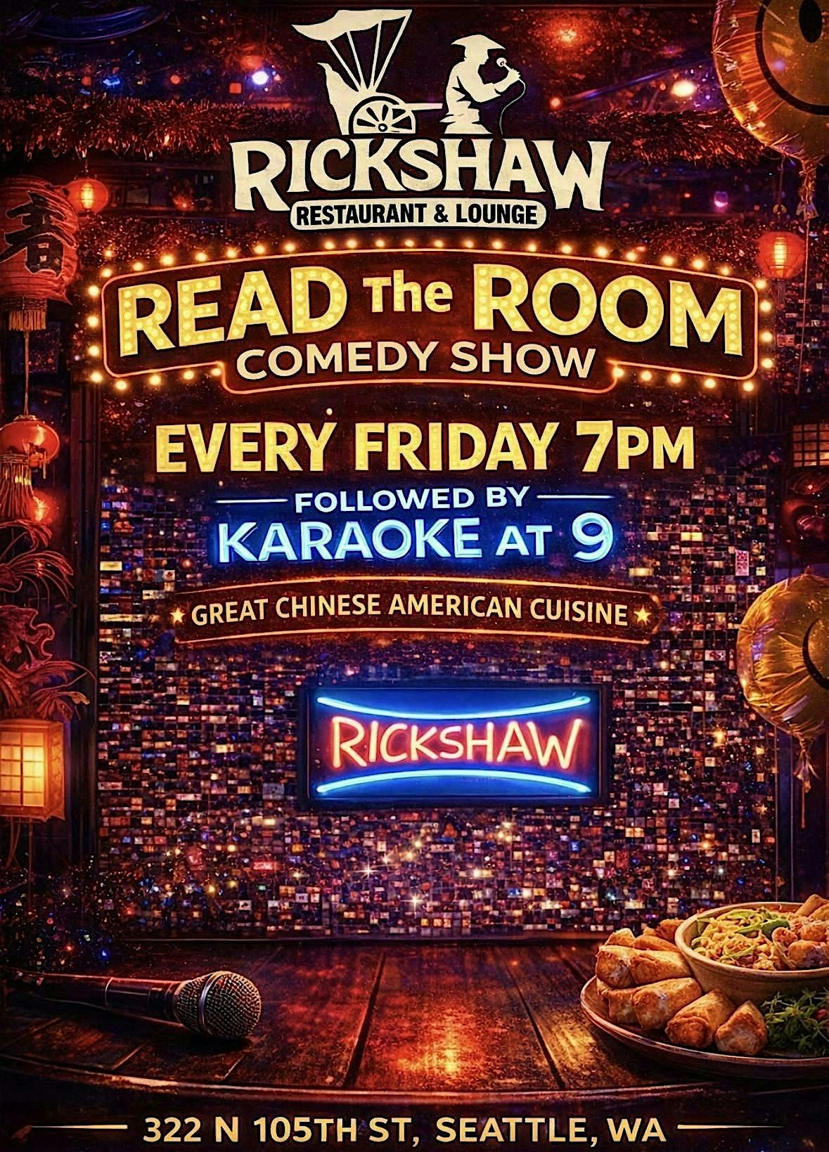 Start your weekend right at The Read the Room Comedy every Friday at the Rickshaw. Laughs at 7, karaoke at 9. Great food, drinks, and fun!