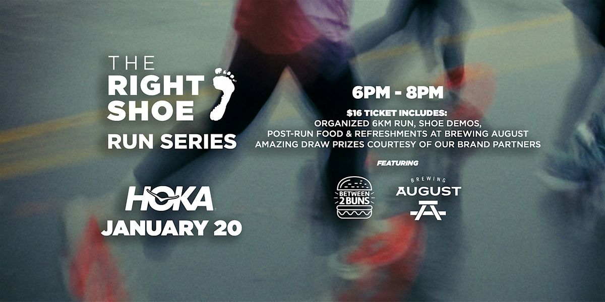 Kick off 2026 with the first event in our Tuesday Night Run Series—presented by HOKA! Join us for an energizing community 6KM run starting and ending at The Right Shoe, complete with demo shoes, a post-run burger & beverage, and great vibes.