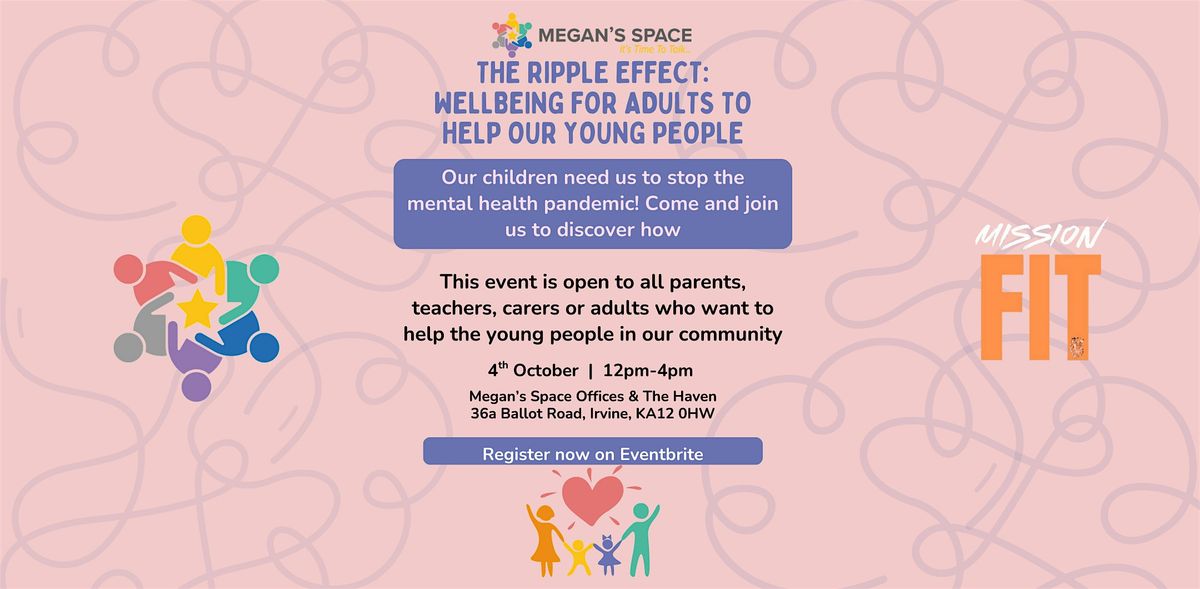 Welcome to The Ripple Effect: Wellbeing For Adults To Help Our Young People event! Join us at Megan's Space Office & Haven for a day filled with insightful discussions, workshops, and activities focused on enhancing the wellbeing of adults to positively impact our young people. Learn practical strategies and tools to support the mental health and overall wellness of the next generation. We will be focusing on the mind, body and soul, working with our partners Mission:FIT to learn about the importance of a healthy lifetyle. We have a special guest, Mark Lawrie The Mind Coach, joining us to talk about mindset.