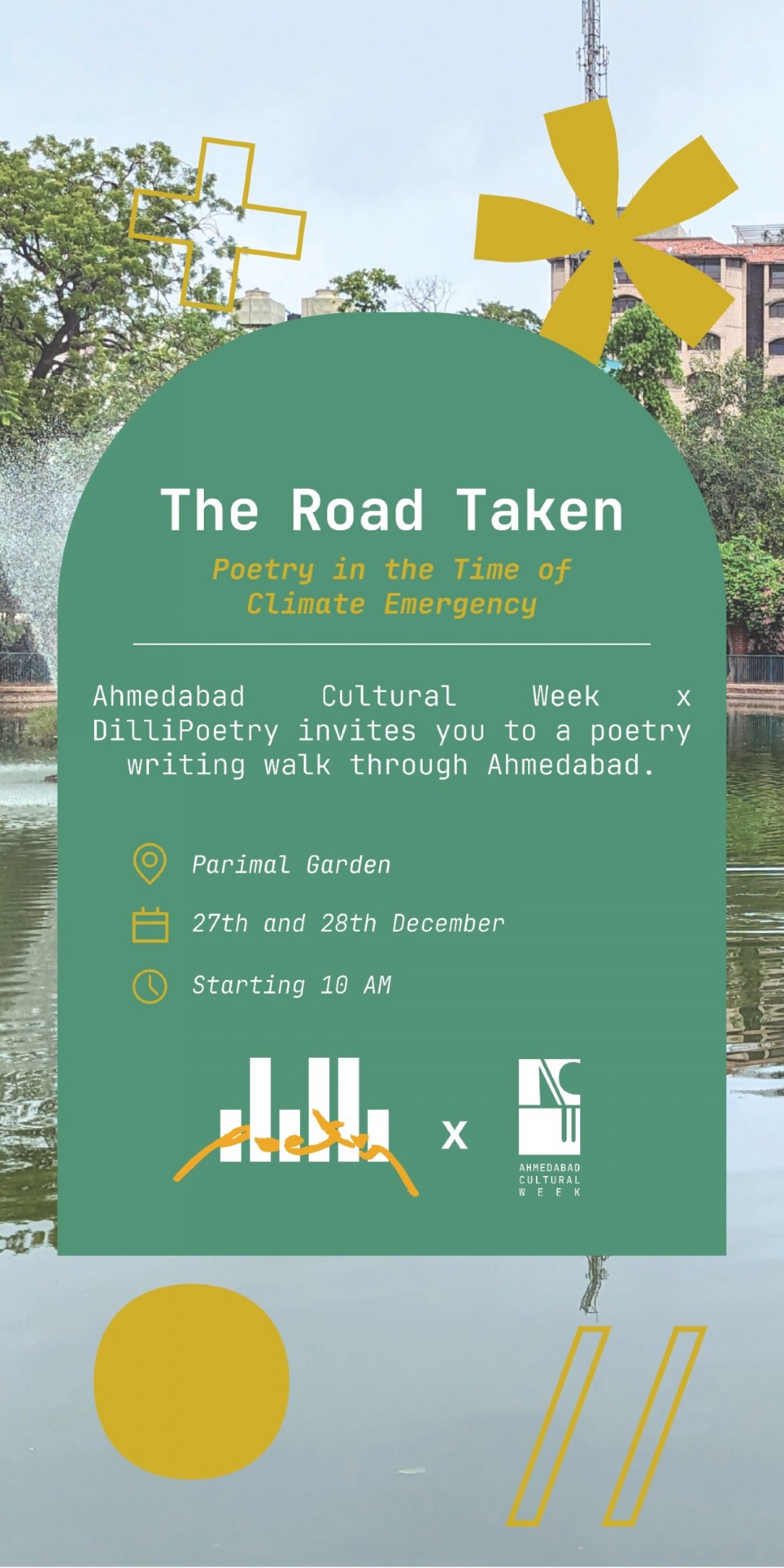 Dillipoetry and Ahmedabad Cultural Week invite you to The Road Taken, a poetry writing walk workshop in Ahmedabad.