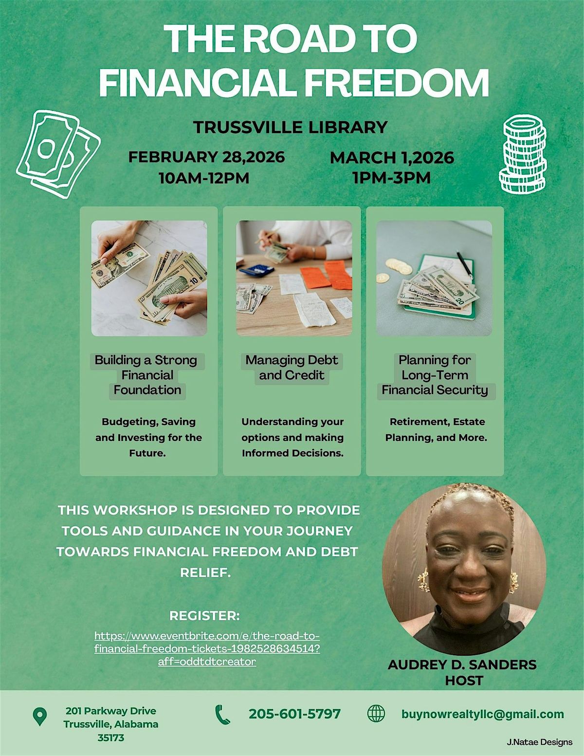 Get ready to start your Financial Freedom and break all generational curses and old patterns. This workshop is designed to help you navigate everyday financial woes and re-align your mind set about finances and money management.