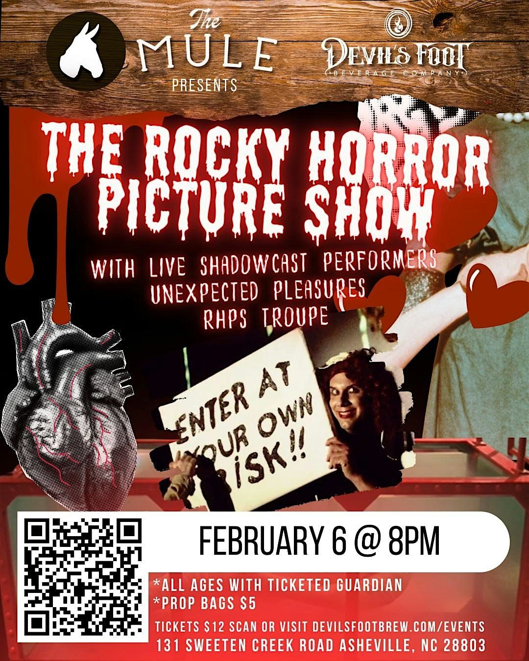 Join us for a wild night as The Mule at Devil’s Foot Beverage Company present a screening of The Rocky Horror Picture Show with live shadowcast performance by Unexpected Pleasures RHPS Troupe!