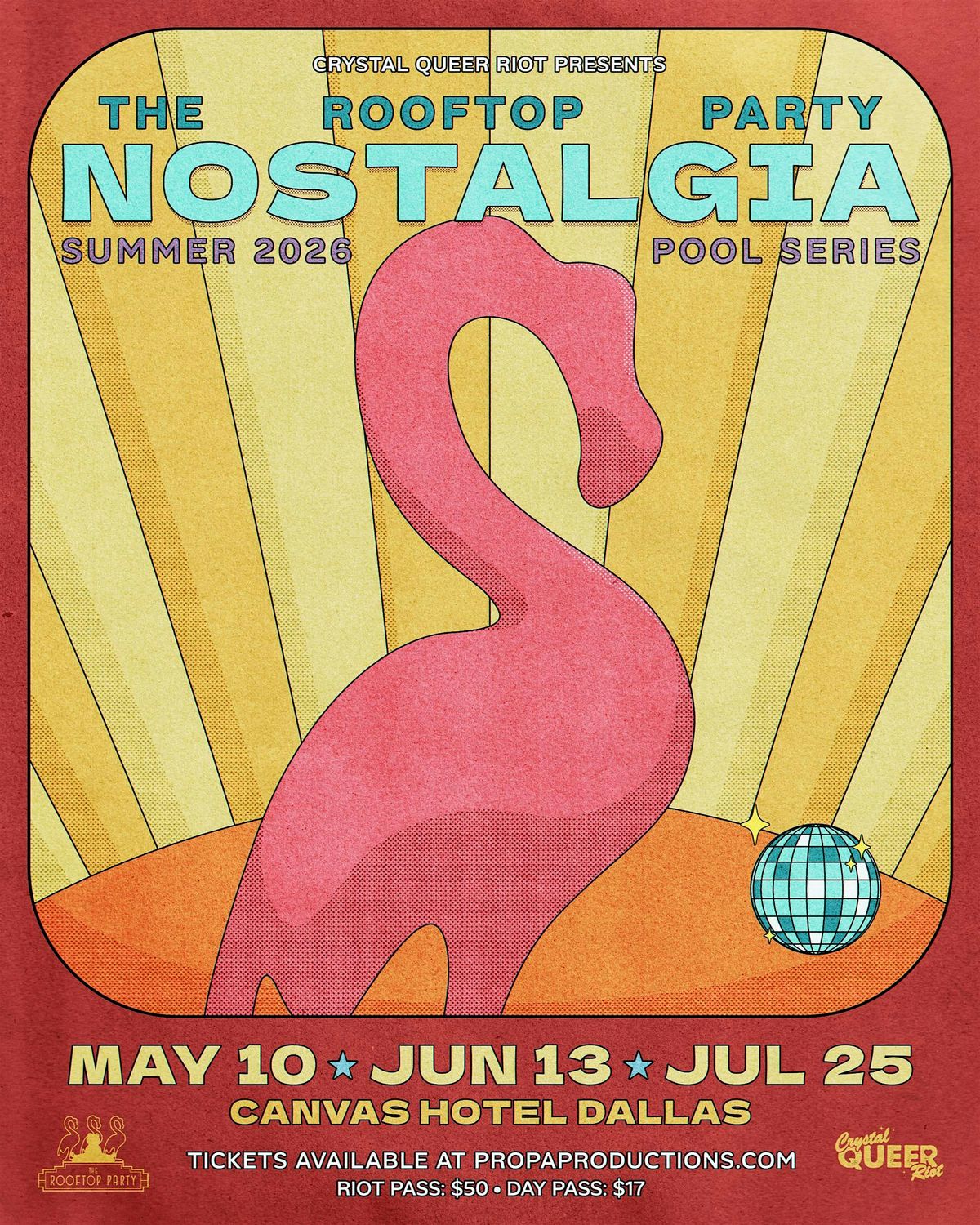 Crystal Queer Riot returns to Canvas Hotel Dallas for the 2026 Rooftop Party series: NOSTALGIA — a rooftop poolside fantasia for the dolls, the divas, the degenerates, the day drinkers, the lovers, the lurkers, and the beautifully overdressed liars who know exactly where they need to be this summer.