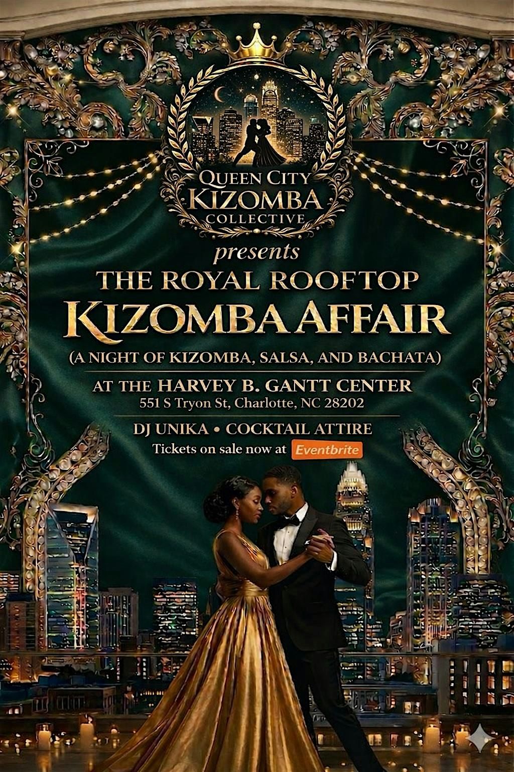 The Royal Rooftop Kizomba Affair brings together Charlotte’s dance community for an elevated evening of music, movement, and connection. Expect smooth Kizomba, vibrant Salsa, and Bachata to keep the energy flowing, all set in a stunning rooftop atmosphere.