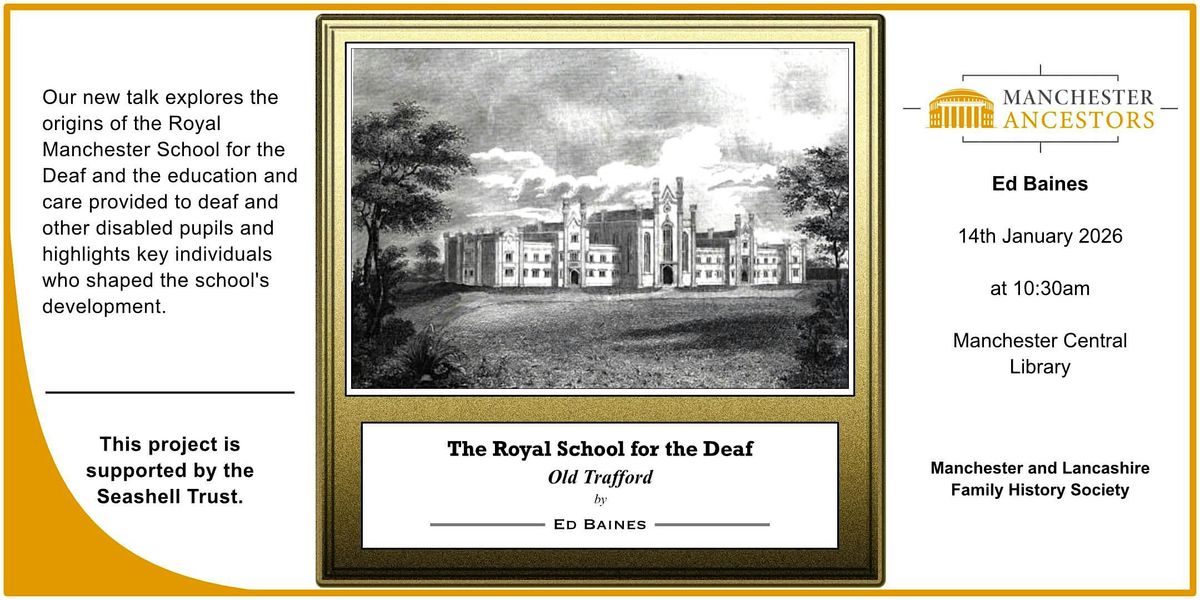 This new talk will include a short review of the beginnings of the school, and then look at the education and care of the deaf and other disabled pupils at the Charity and see which individuals played a prominent role.In a project supported by the Seashell Trust, the modern incarnation of the former Royal Manchester School for the Deaf, MLFHS volunteers have indexed the surviving admission registers to the school. These are of value both to family historians and to those investigating the history and genetic aspects of deafness.