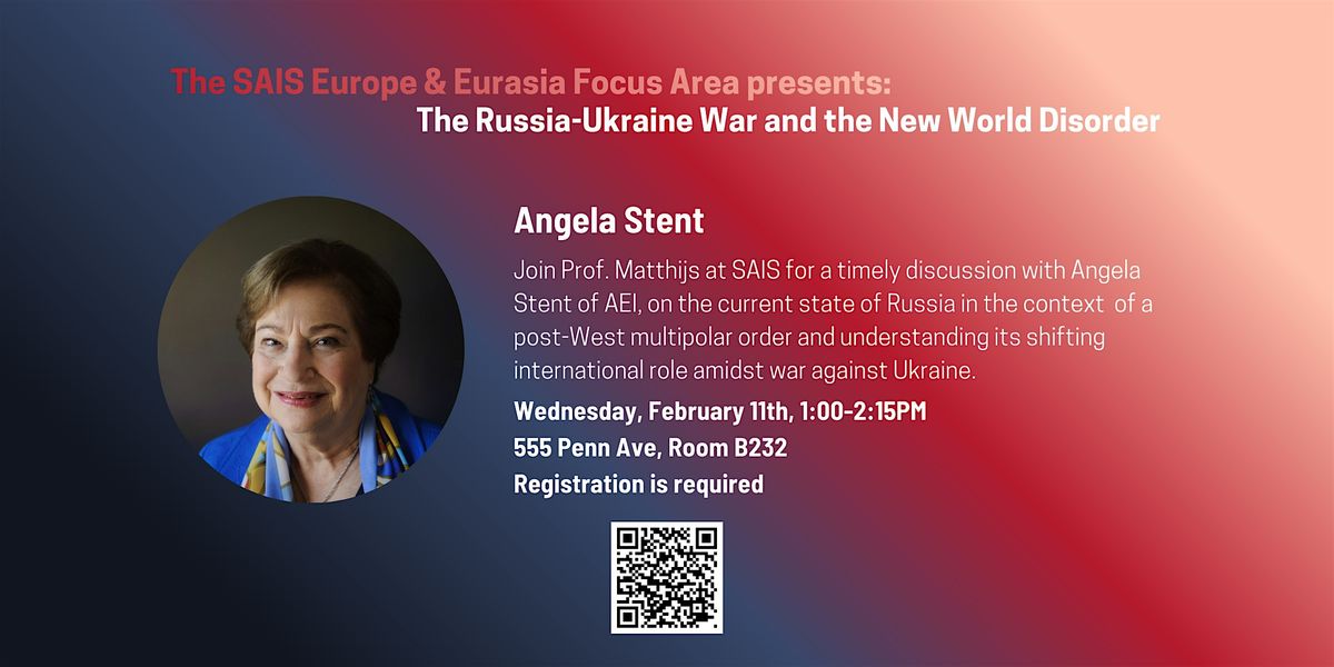 Please join the SAIS Europe and Eurasia for lunch, where Professor Matthias Matthijs will be hosting Angela Stent of AEI, who will be discussing the fact that Vladimir Putin, as he insists that the post-West multipolar order has arrived. Meanwhile Donald Trump touts the new “America First” order. Therefore the questions must be asked on firstly, how does Russia view its place in the “post-West” world? Secondly, how has the war in Ukraine changed the Kremlin's understanding of its international role?".