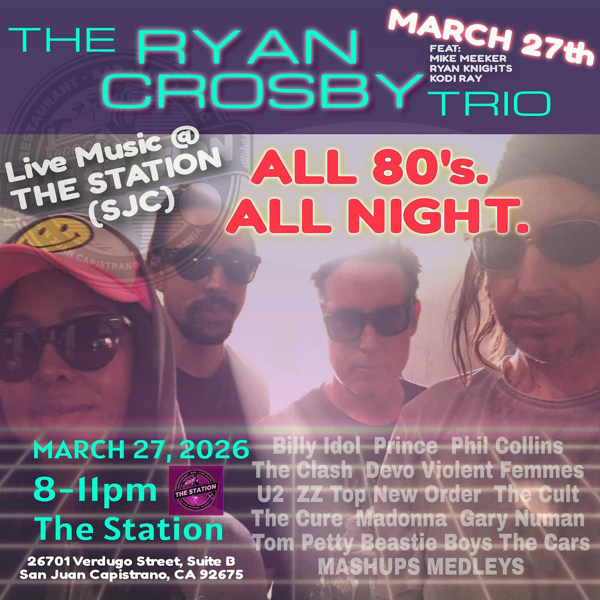 80's jams ALL NIGHT!! Come dance your butts off at The Station. Live on stage The Ryan Crosby Trio!!