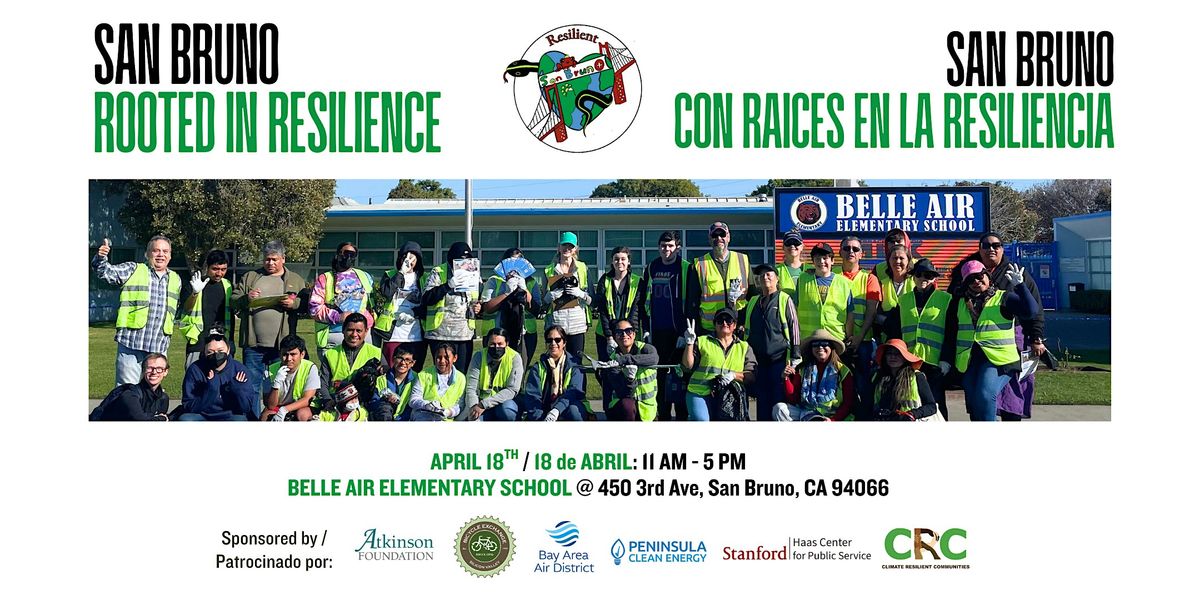 Sábado, 18 de abril, de las 11 am. a las 5 pm. en la escuela primaria Belle Air (450 3rd Ave, San Bruno, CA 94066).