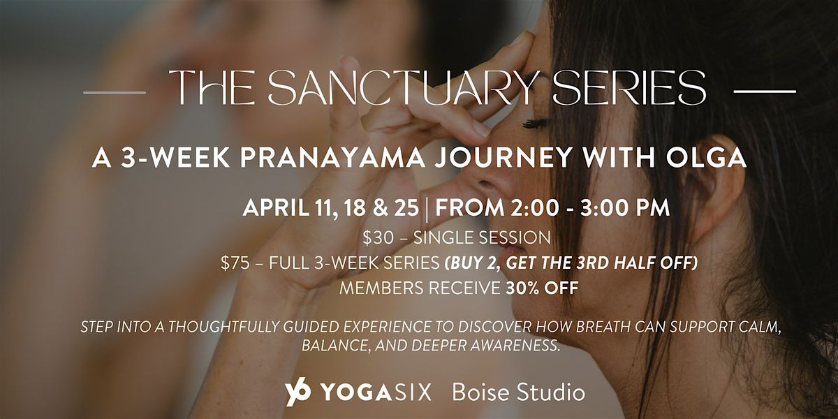 Join Olga for The Sanctuary Series, a three-week pranayama workshop designed to introduce you to foundational yogic breathing techniques that support nervous system regulation, stress relief, and a deeper meditation practice.