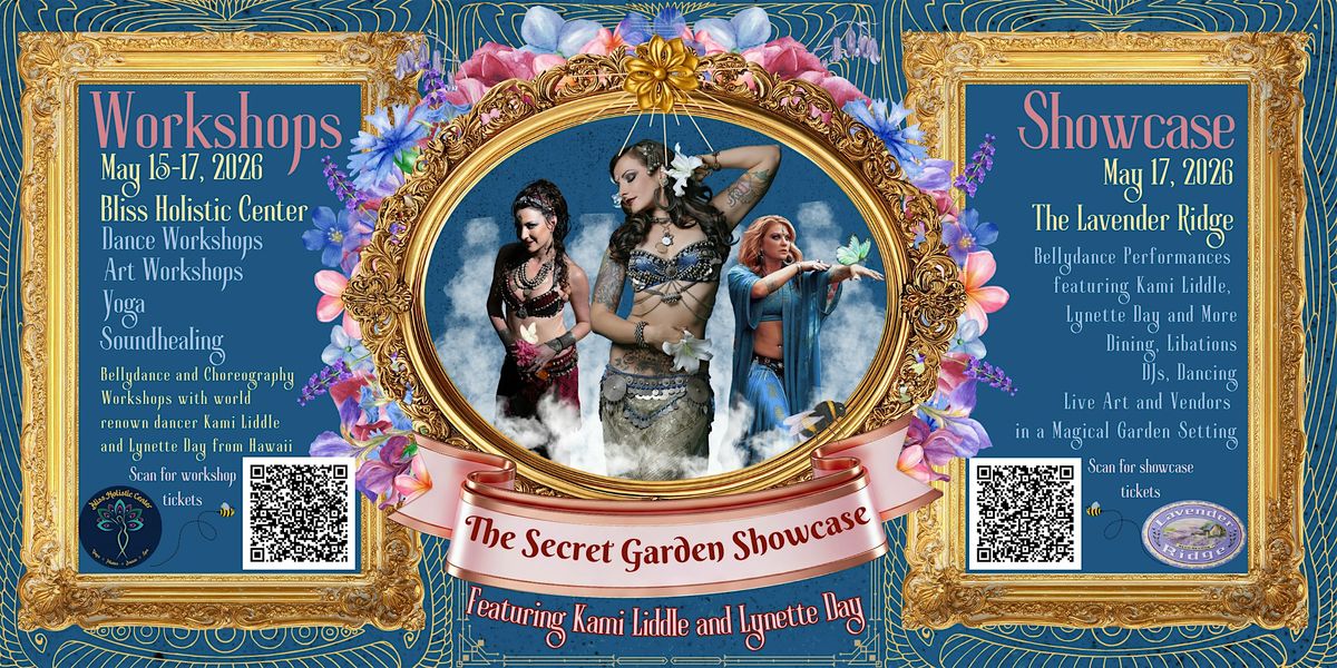 Join us for Reno's first annual Secret Garden Bellydance and Art Showcase in an intimate garden setting at the Lavendar Ridge in Reno, NV featuring world renown dancer Kami Liddle and Lynette Day from Hawaii. This transformative evening will feature a Bellydance showcase, live art, vendors, food, libations, a live DJ laser after party and many more suprises at one of Reno's best venues. The showcase is for all ages, minors must be accompanied by an adult. This showcase is located at Lavendar Ridge and will be the finale to the weekend festival that will host Bellydance, Choreography and Art Workshops at the Bliss Holistic Center that will occur May 15-17, 2026 located in Reno, NV.
