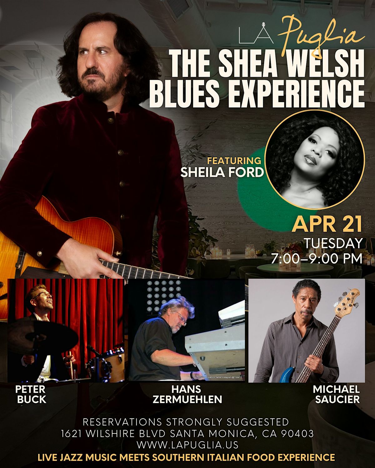 Featuring Sheila Ford on Vocals, Peter Buck on Drums, Michael Saucier on Bass, Hans Zermuehlen on KeysAbout this Event