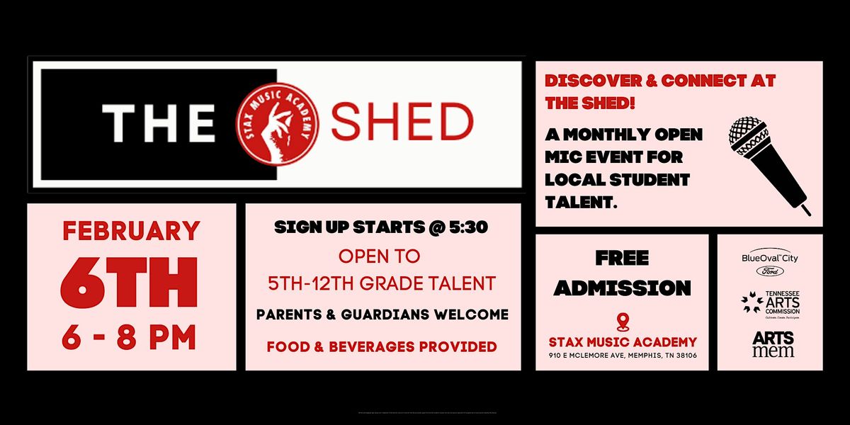 Stax Music Academy returns this February with The Shed, our dynamic monthly open mic series created especially for young artists. This high-energy, supportive event offers students a welcoming stage to share their talents, connect with fellow creatives, and celebrate artistic expression in all its forms.