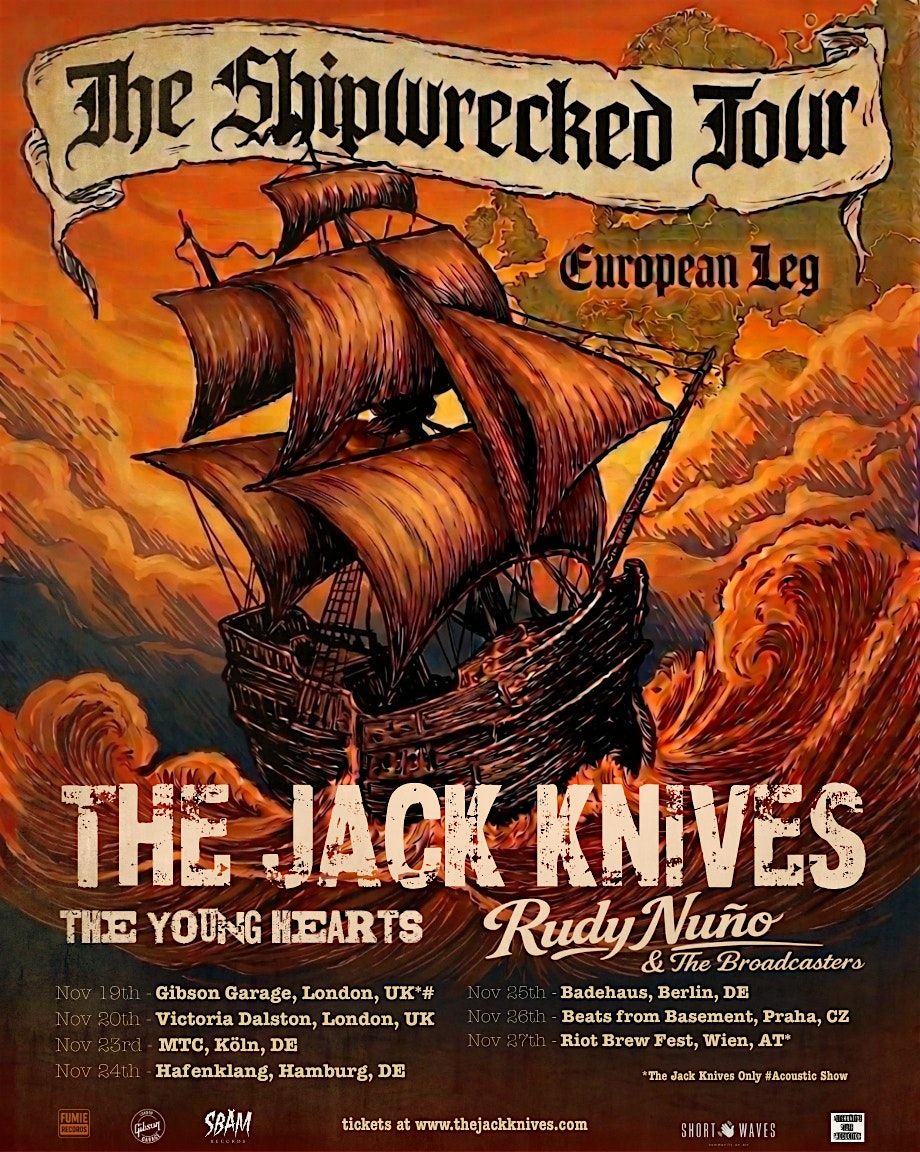 The Shipwrecked Tour lands in Hamburg for a high-energy night of punk rock, featuring The Jack Knives, The Young Hearts, and Rudy Nuno
